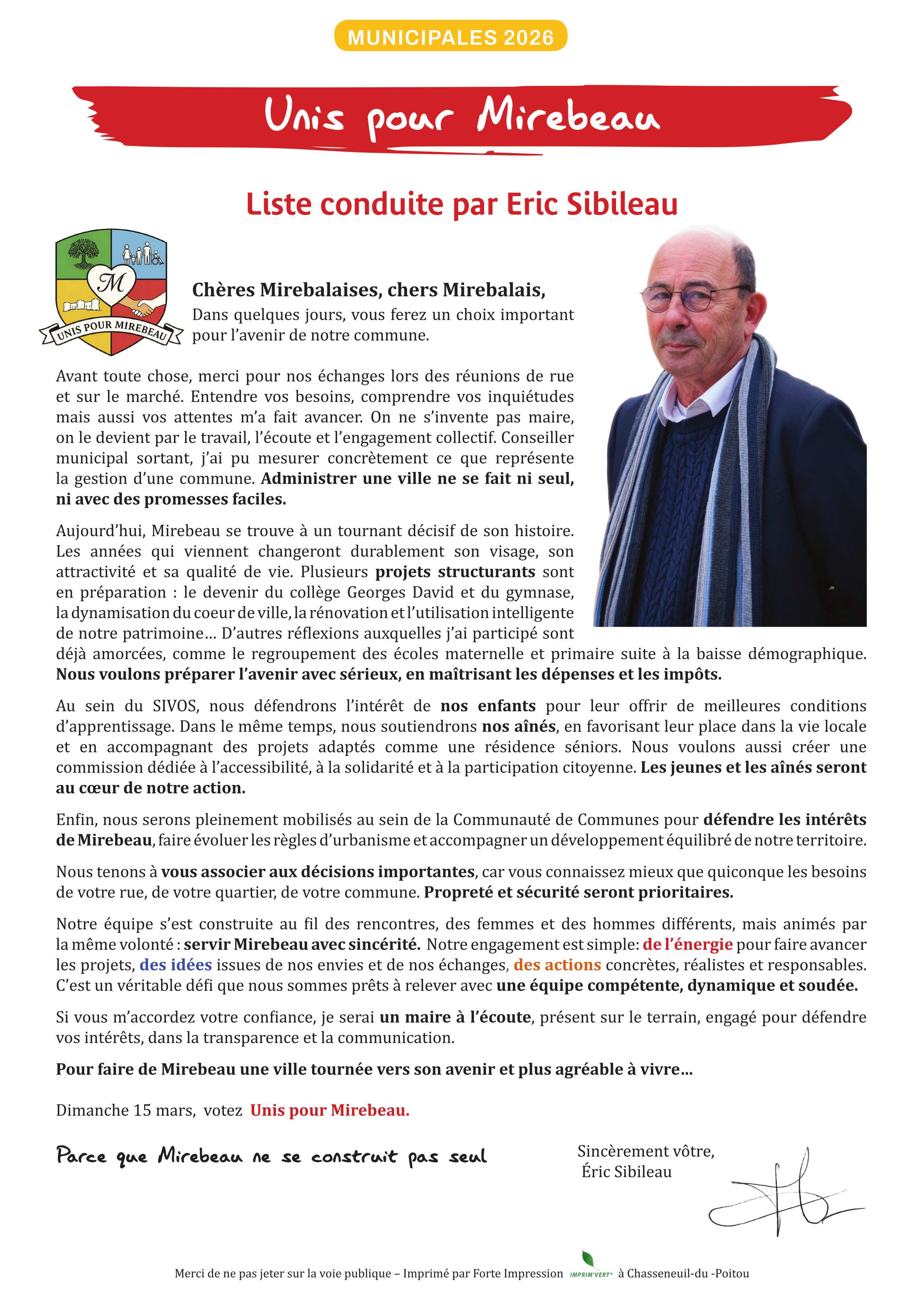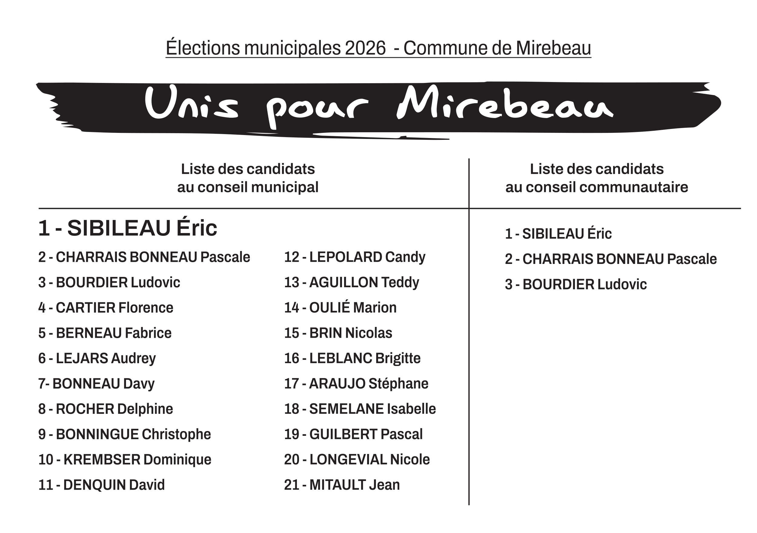 Cet espace est dédié aux Mirebalais et aux Mirebalaises pour les élections municipales
